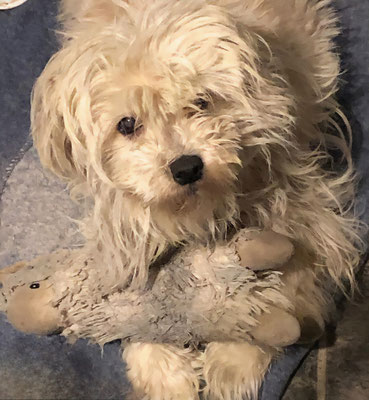 since, sleeping with it in his mouth. He even panics if he can't find it. His foster mum was once woken in the night by his hysterical barking because he’d lost his llama, only to find