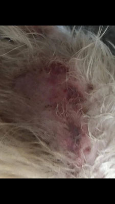 Teddy, a 3 year old boy joined us in rescue in 2020. He was a dog who had endured some form of neglect. Covered in open sores and so infested with fleas they had burrowed deep under his skin,